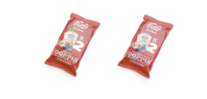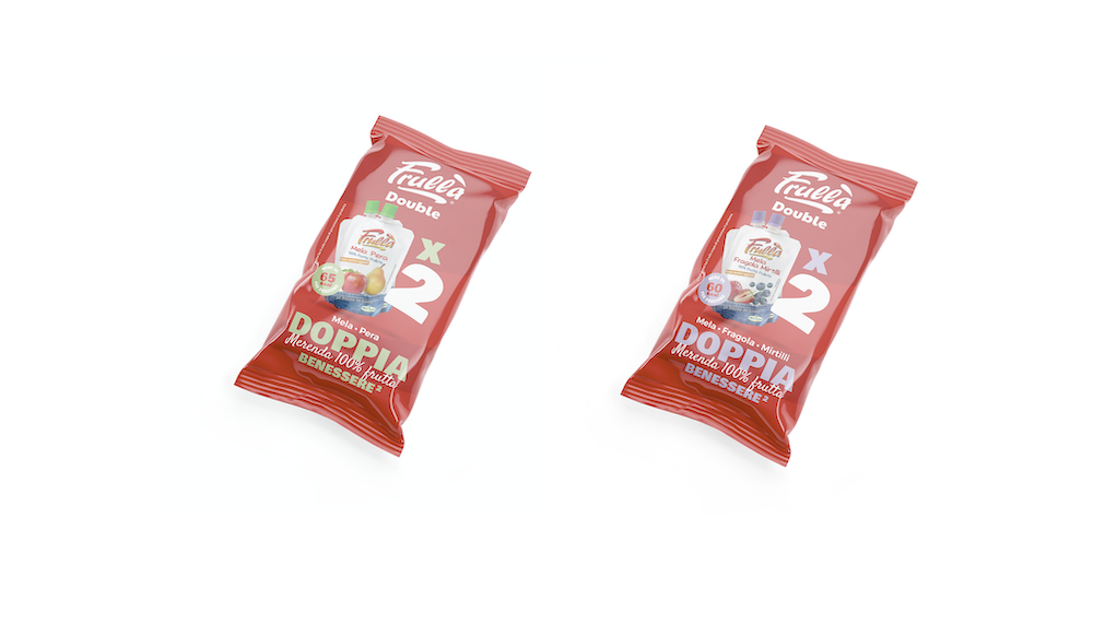 Questa volta, però, la novità non è nella frutta utilizzata, bensì nel formato del prodotto. Infatti, è nato Frullà Double: una confezione unica, di un bel rosso a sostenere la grafica e le immagini, che contiene 2 pratici doypack dello stesso gusto per una doppia convenienza.