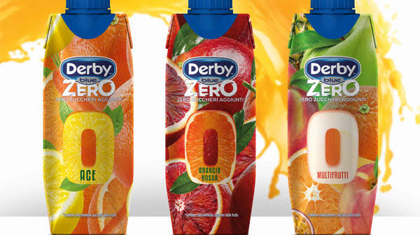 La nuova linea Derby Blue Zero in formato Tetra Prisma® da 330 ml soddisfa le esigenze del consumo on-the-go, con confezioni monodose comode e facili da utilizzare e mettere in borsa per essere portate con sé. La forma ottagonale e prismatica da un lato esalta il look e i colori dirompenti che raccontano la frutta da bere, dall’altro si adatta perfettamente alle mani di qualsiasi consumatore, con una presa agevole durante il consumo e una elevata praticità di utilizzo e trasporto.