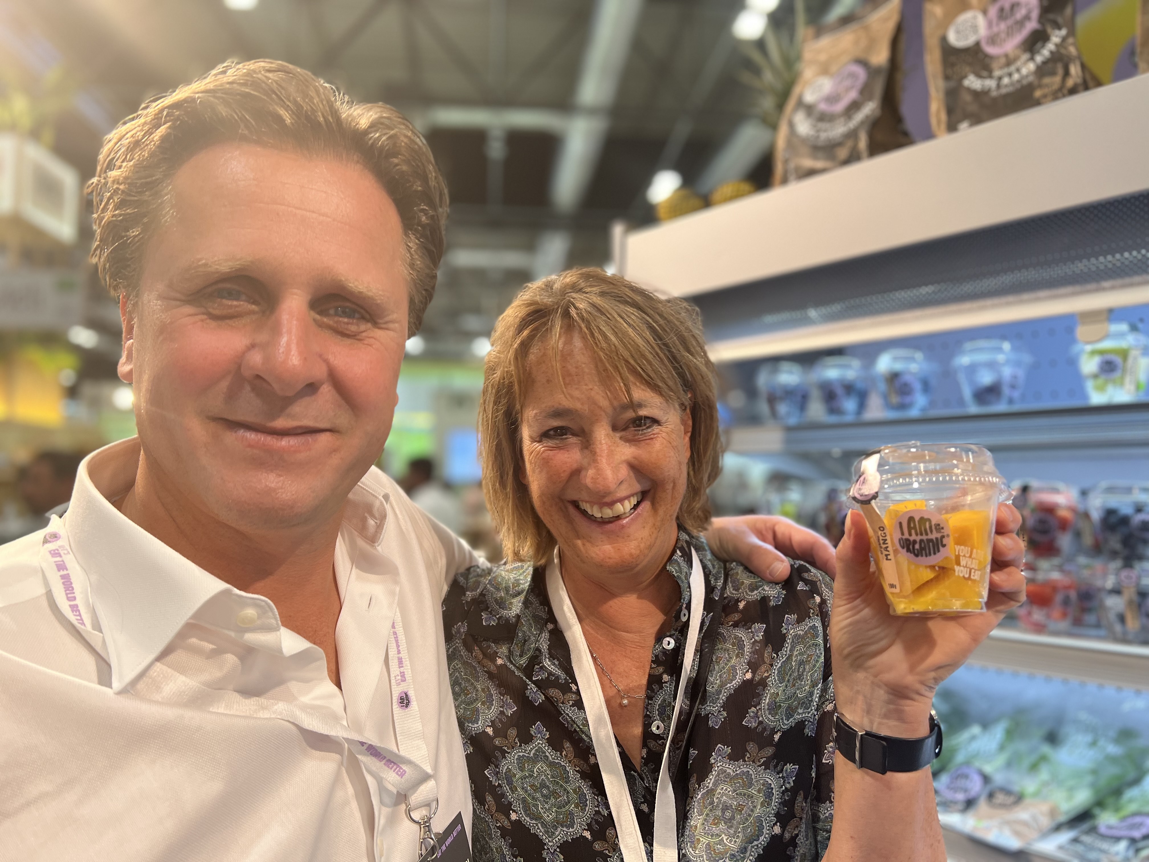 “Produciamo frutta bio e di qualità in diversi Paesi – ci ha detto Sander Barnhoorn (a sinistra nella foto), marketing manager dell’azienda -. Tra questi l’Italia e in particolare la Sicilia; la Spagna e il Marocco. Tutta la produzione è bio e adesso siamo arrivati a proporre queste otto referenze di mix di frutta bio che vogliamo distribuire sul mercato europeo. Le abbiamo lanciate quest’anno; per il momento si trovano sul mercato olandese ma puntiamo ad espandere sia i mercati di sbocco, sempre europei, che ad aumentare i fornitori della materia prima”.