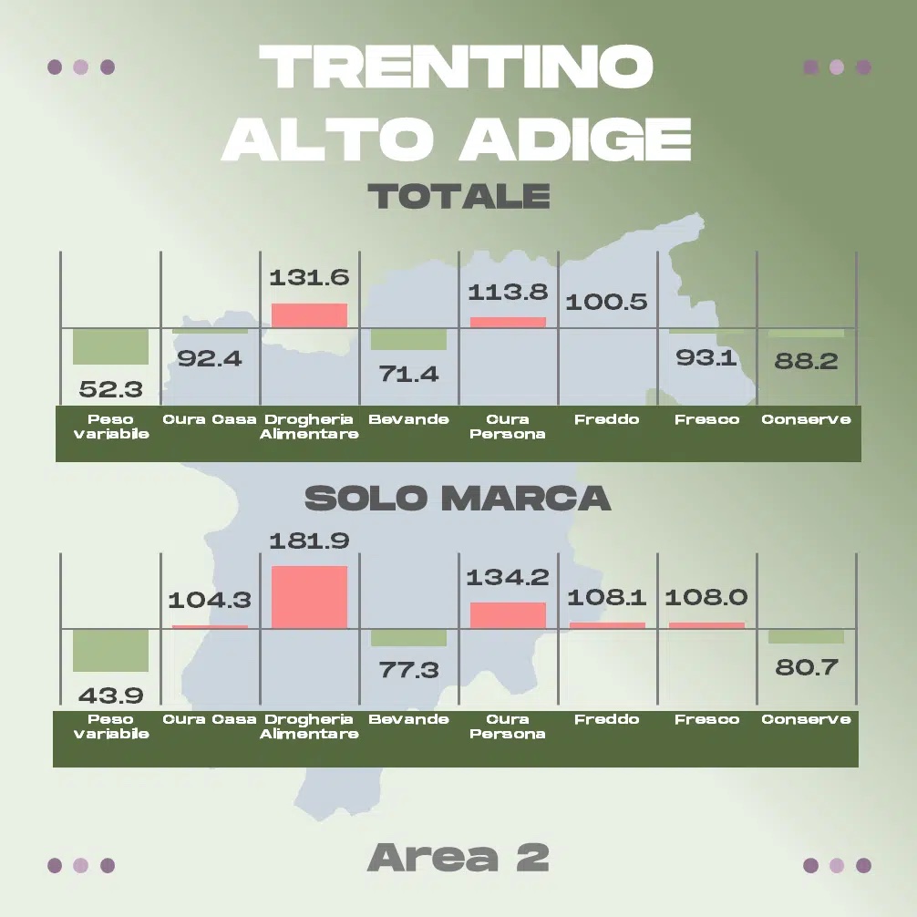 Dal raffronto diretto dei volantini, emerge come quelli proposti dai discount siano mediamente più convenienti di quelli proposti dalle altre forme distributive. In questo senso, però, la “MDD”, il cui impatto è di crescente rilevanza anche nella IV Gamma, gioca un ruolo importante: escludendola dal calcolo, sia per i discount che per iper e super, emergono infatti maggiori convenienze a favore delle promozioni ISS, più evidenti in area 3 e area 4, e particolarmente per il Trentino-Alto Adige.
