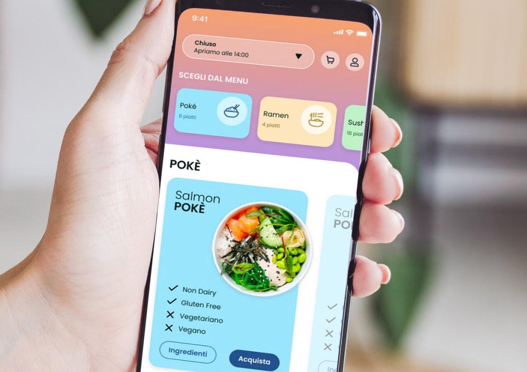 Una comodità per il cliente ed un vantaggio anche per il ristoratore che potrà creare così una vera e propria community con tutti gli utenti/clienti che andranno a scaricare l’app. E ai quali si potranno inviare notifiche push senza alcun costo, per avvisare ad esempio di eventi inseriti in calendario o delle ultime novità in menù. L’app non utilizza QR Code e permette ai clienti di personalizzare il menu, componendo una poke di propria scelta (qualora il ristoratore preveda questa soluzione). Per gli ordini arrivati attraverso l’app non verrà trattenuta una quota (fee) per ciascun ordine ricevuto, come fanno invece molti altri servizi equivalenti. Il ristoratore pagherà solamente una quota fissa mensile e non si ritroverà sorprese in termini di costi. Una soluzione mobile e dinamica, dunque, in grado di andare incontro alle esigenze dei locali che vogliono passare ad una gestione più smart del servizio.