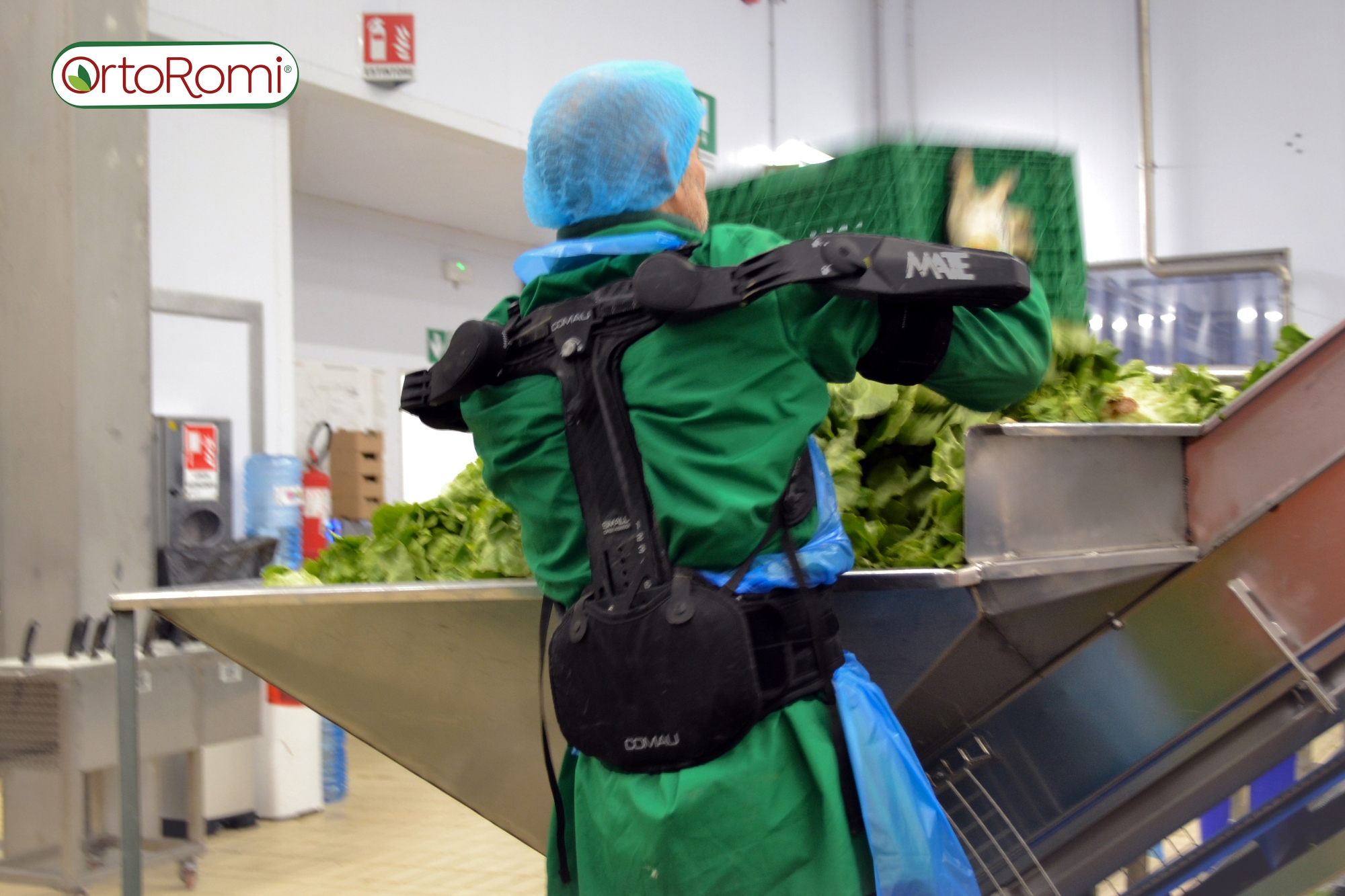 L’introduzione degli esoscheletri ha interessato il reparto “taglia e monda” dove si sono rivelati particolarmente performanti nel supporto all’attività degli operatori impegnati nella movimentazione continua di casse pesanti di insalata. In questo contesto produttivo, caratterizzato da sforzi ripetitivi e prolungati, l’utilizzo dell’esoscheletro consente di eseguire il sollevamento dei carichi in maniera corretta (flettendo le gambe e tenendo la schiena ben diritta), con un significativo beneficio in termini di riduzione dello sforzo fisico complessivo.